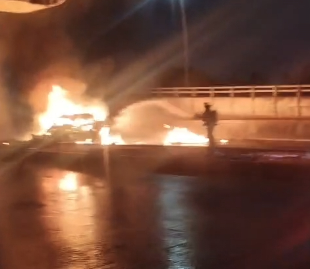 Choca y se incendia patrulla en la autopista México–Puebla; muere un Policía Estatal