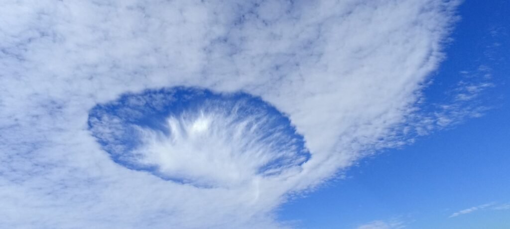 Un extraño “anillo” apareció este miércoles en el cielo de Puebla, causando asombro entre habitantes que miraban hacia el norte de la ciudad. Muchos lo interpretaron como un fenómeno fuera de lo común, pero en realidad se trató de un espectáculo atmosférico conocido científicamente como “nube perforada” o hole punch cloud.