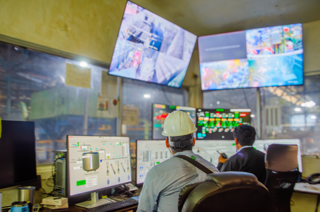 El ingenio opera con un sistema integral que combina software industrial especializado, como Wonderware, y controladores lógicos programables (PLC), los cuales reciben información de cientos de sensores distribuidos estratégicamente en toda la planta. Estos dispositivos permiten supervisar variables críticas como peso, temperatura, presión, niveles de líquidos y flujos de producción, facilitando la toma de decisiones inmediatas y precisas por parte del personal técnico.