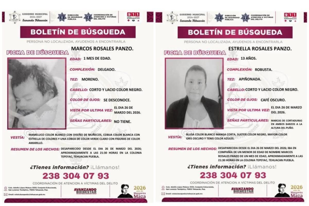 De acuerdo con la información difundida previamente, la menor y su hijo, identificado como Marco Rosales Panzo, fueron vistos por última vez el pasado 26 de marzo alrededor de las 21:00 horas en la colonia Tepeyac, en el municipio de Tehuacán, lo que derivó en la activación de la Alerta Amber y el despliegue de protocolos de búsqueda por parte de la Fiscalía General del Estado (FGE).
