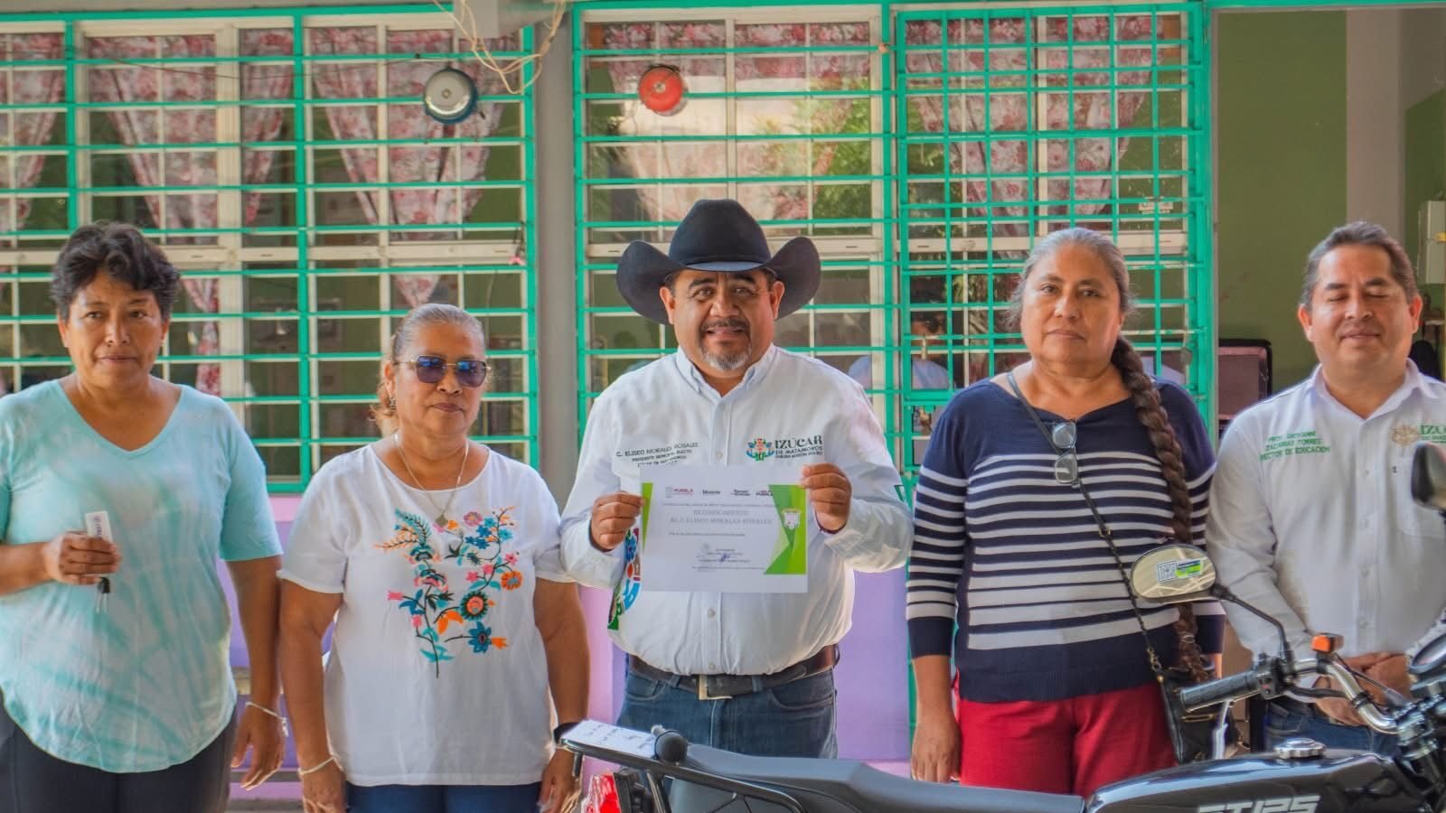 En respaldo a la educación básica del municipio, el edil de Izúcar de Matamoros, Eliseo Morales Rosales, entregó una motocicleta al preescolar “Diego Rivera”, ubicado en el barrio de San Juan Piaxtla, con el propósito de contribuir a la recaudación de recursos para el plantel.