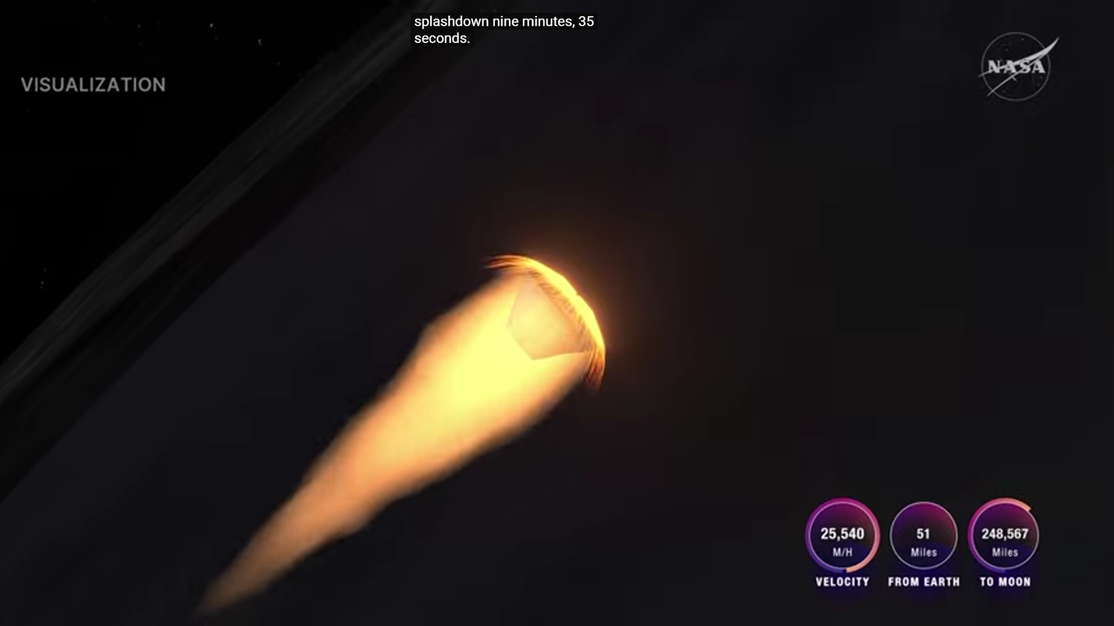 El reingreso a la atmósfera terrestre se realizó mediante una maniobra de alta precisión, en la que la nave fue orientada estratégicamente para controlar las condiciones térmicas, antes del amerizaje controlado en el océano Pacífico.