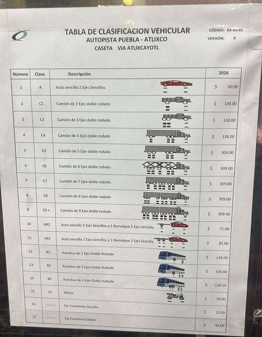 A partir de este 17 de enero, el costo de la caseta Atlixco–Puebla registró un incremento de tres pesos, al pasar de 57 a 60 pesos para automóviles tipo sedán. El ajuste se da a un año de su último aumento, registrado a inicios del año pasado.