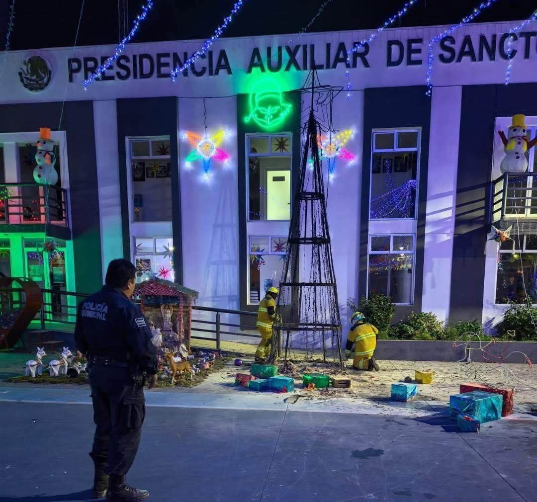 El árbol de Navidad colocado en la explanada de la junta auxiliar de Sanctorum, en el municipio…