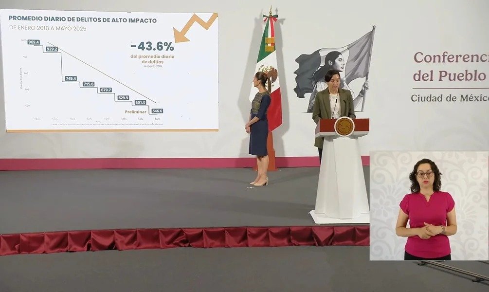 El Gabinete de Seguridad Nacional informó que los delitos de alto impacto disminuyeron a comparación del 2024; por lo que se detalló que: el promedio disminuyó un 37%. Teniendo a Guanajuato, Chihuahua, Baja California, Sinaloa, Estado de México, Guerrero y Michoacán como estados con mayor número de homicidios; así como contemplar a 26 entidades federativas bajaron su índice.