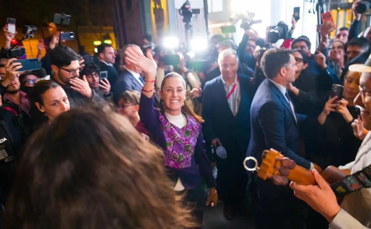 La presidenta de México, Claudia Sheinbaum, arribó a Barcelona para asistir a la cuarta Cumbre en Defensa de la Democracia. A su llegada, un grupo de ciudadanos mexicanos la recibió con música de son jarocho y arreglos florales.