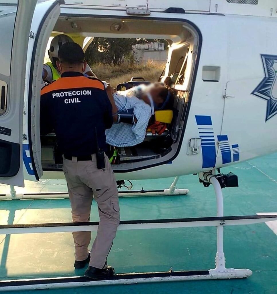 Debido a la complejidad de su cuadro clínico, fue trasladado en una ambulancia al helipuerto de la demarcación, para su referencia vía aérea por el Sistema de Urgencias Médicas Avanzadas (SUMA) al Hospital General de Cholula, en la ciudad de Puebla, unidad que recibió al paciente esta tarde para continuar con su atención médica especializada.