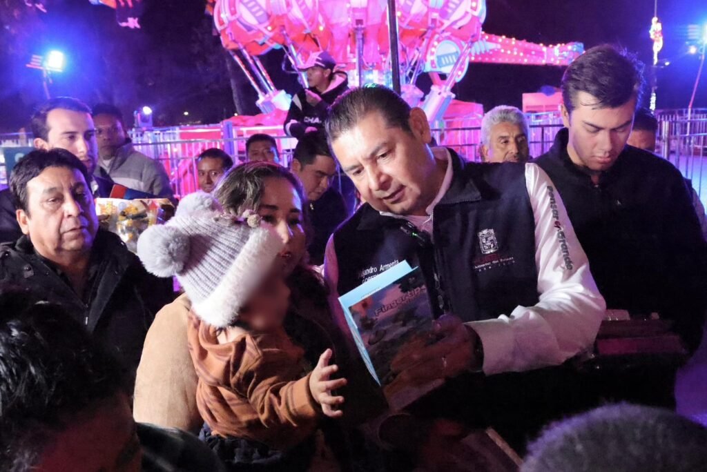 CIUDAD DE PUEBLA, Pue.- En un ambiente de alegría y paz, el gobernador de Puebla, Alejandro Armenta, convivió con miles de familias y entregó 5 mil juguetes a pequeñas y pequeños que compartieron sonrisas llenas de ilusión, durante su recorrido por el Festival Navideño “Por Amor a Puebla”, que se realiza en el Centro Expositor.