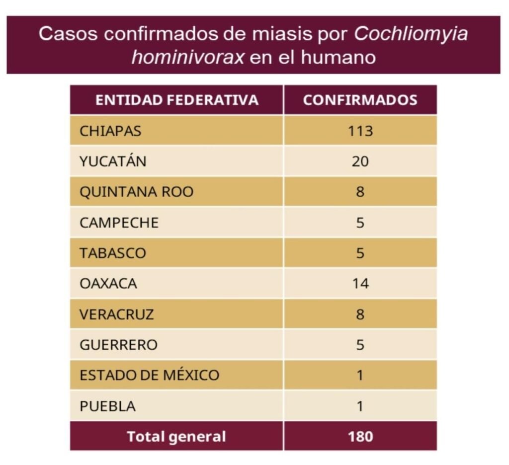 La miasis por gusano barrenador suele asociarse a heridas abiertas o mucosas expuestas, especialmente en zonas rurales donde existe contacto con animales infectados. Por ello, autoridades mantienen medidas preventivas y vigilancia epidemiológica en distintas comunidades del estado.