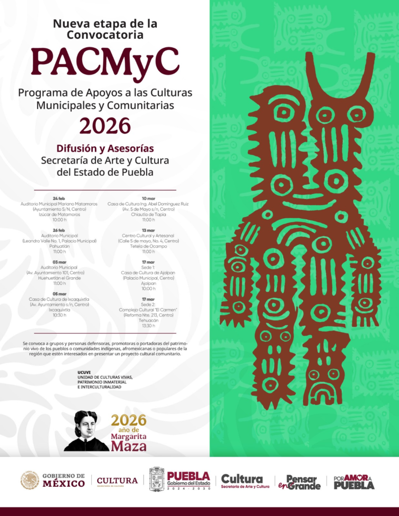 El Ayuntamiento de Chiautla anunció la apertura de la convocatoria para el Programa de Acciones Culturales Multilingües y Comunitarias (PACMyC) 2026. Esta iniciativa busca proteger y difundir la identidad cultural del municipio a través del apoyo a proyectos ciudadanos.