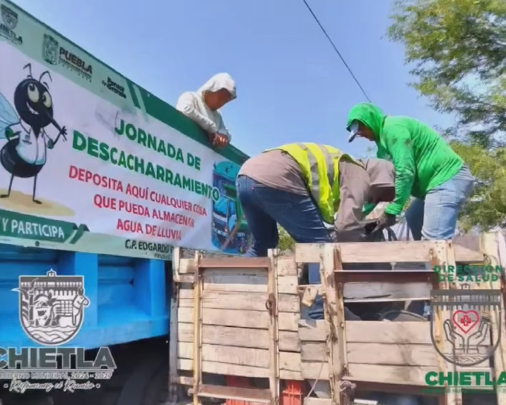 El Ayuntamiento de Chietla, presidido por el alcalde Edgardo Ponce Cortes, puso en marcha una campaña de descacharramiento en distintas comunidades del municipio, con el objetivo de prevenir la proliferación del mosquito transmisor de enfermedades como dengue, zika y chikungunya.