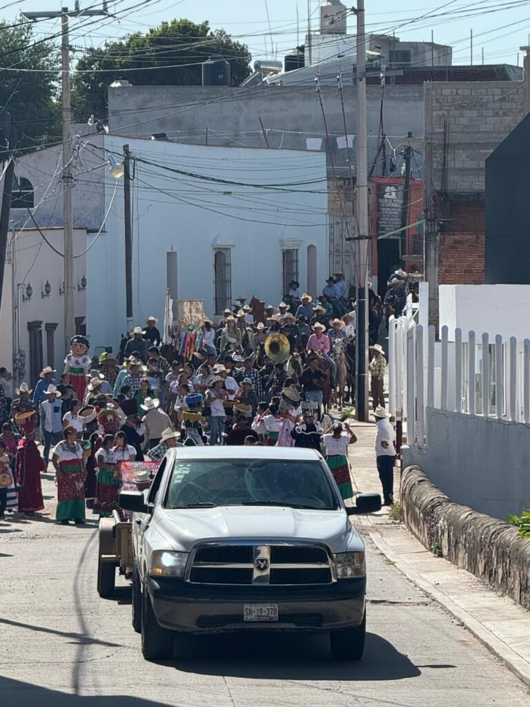 El magno festejo, además de estar acompañado por los cabalgantes, también contó con la presencia de bandas de música y chinelos, que fueron fundamentales en la celebración, así como del presidente municipal, Gonzalo Oropeza García, quien también participó en el evento, reafirmando el compromiso del Gobierno local con la preservación de las costumbres que definen la vida comunitaria.