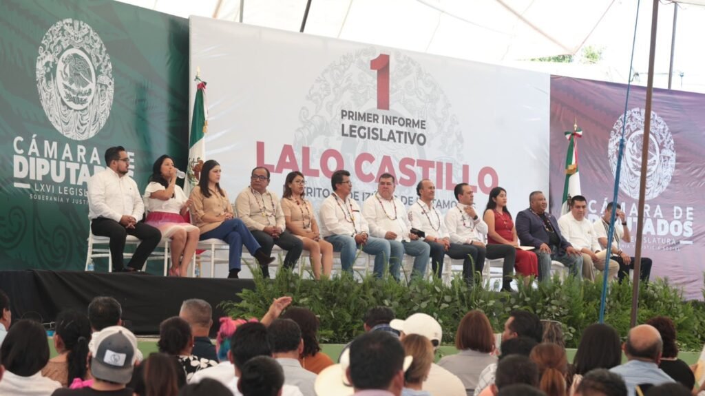 Castillo López informó que ha realizado más de 100 giras de trabajo en comunidades de su distrito, atendido a mil 300 audiencias ciudadanas, y gestionado obras comunitarias como caminos, agua potable y espacios públicos, en coordinación con el Gobierno estatal.