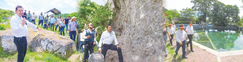 La ruta inició en la junta auxiliar de San Juan Calmeca, del municipio de Tepexco, donde Armenta inspeccionó el sitio arqueológico denominado “La Cama de Piedra”. Acompañado por el presidente auxiliar de Calmeca, representantes comunitarios, la doctora Laura Rodríguez Cano —especialista en estudios centroamericanos— y arqueólogos del Instituto Nacional de Antropología e Historia (INAH), el gobernador constató los vestigios del periodo Clásico al Posclásico.