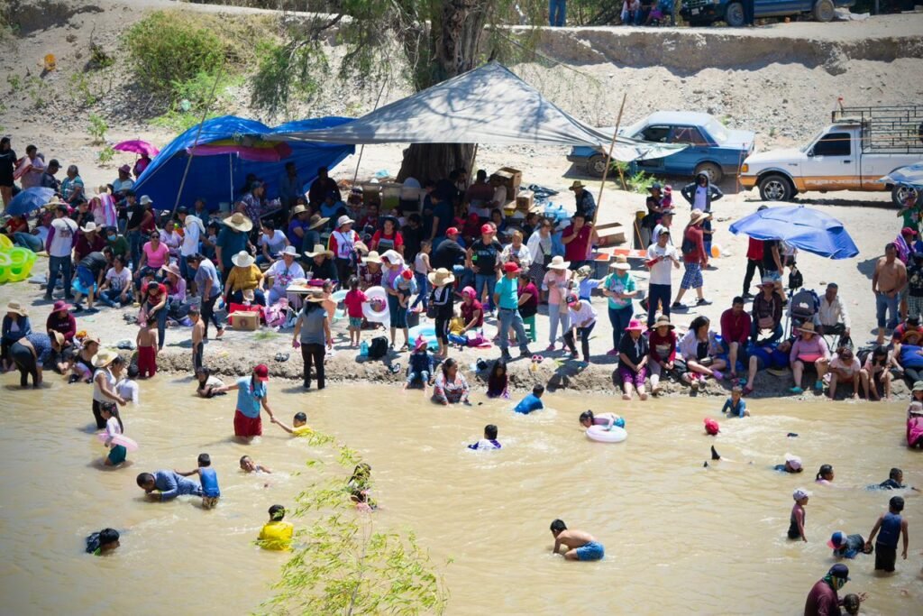 A unos metros del sagrado recinto, el río se llenó de visitantes, quienes aprovecharon para refrescarse. Familias completas convivieron, descansaron y compartieron alimentos, generando una atmósfera que combinó lo espiritual con lo comunitario.