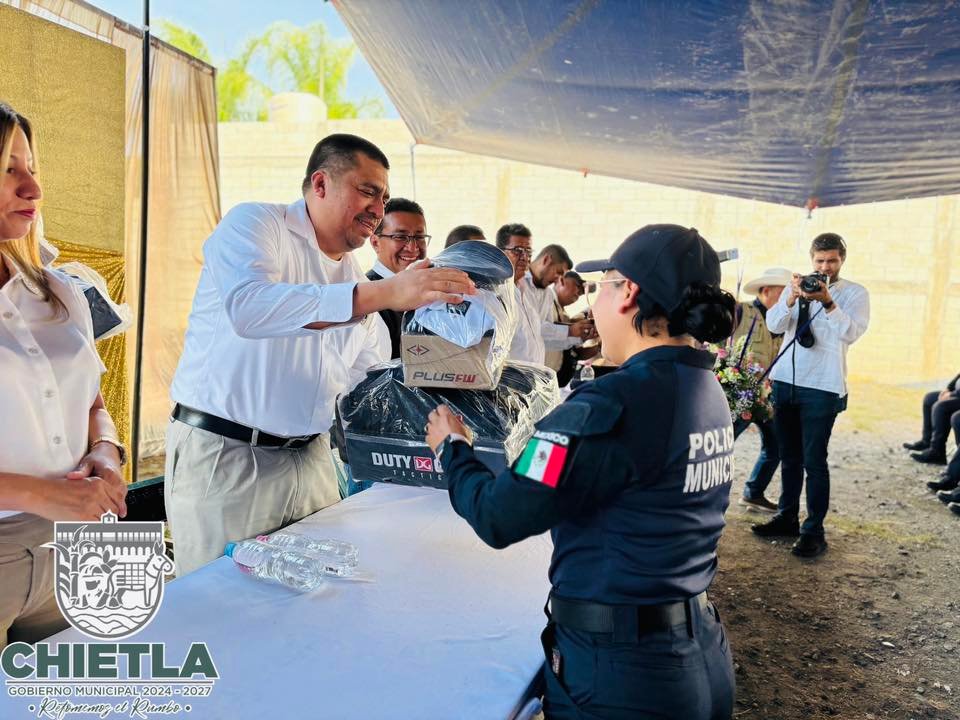 El Ayuntamiento de Chietla realizó la entrega de unidades vehiculares tipo patrulla y paquetes de uniformes al personal del municipio. El equipo de trabajo está destinado a los elementos que integran las áreas operativas de Seguridad Pública, Protección Civil y Vialidad.