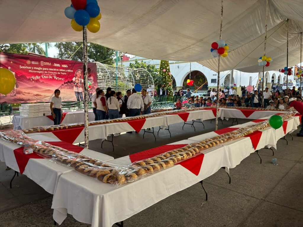 Los ciudadanos compartieron la mesa al partir una “Rosca de Reyes” gigante, donde los protagonistas de la celebración fueron los niños y niñas de la demarcación, quienes recibieron regalos por parte del Gobierno del Estado en coordinación con la administración local de Chiautla de Tapia.