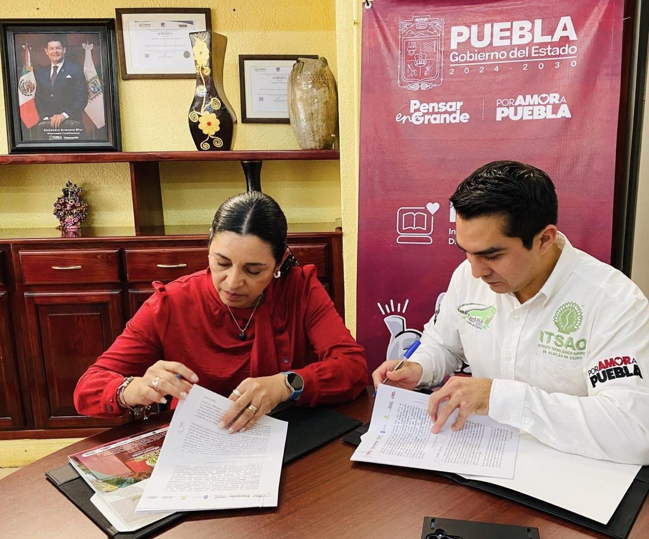 Acatlán de Osorio, Pue.- Con el objetivo de ampliar las oportunidades académicas y profesionales para el estudiantado, el Instituto Tecnológico Superior de Acatlán de Osorio, representado por su director general, Alejandro Córdova Guerrero, firmó un convenio de colaboración con el Instituto de Educación Digital del Estado de Puebla (IEDEP), encabezado por su directora, Juana Guadalupe Marmolejo Sánchez,