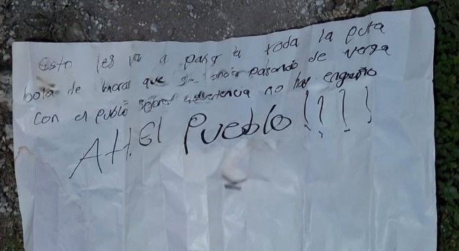 El hallazgo, ocurrido alrededor de las 5:00 horas del martes en la esquina de las calles Aron Merino y Joséfa Ortiz, dejó en evidencia una escena brutal: una bolsa negra contenía una cabeza, una mano y una pierna fuera del envoltorio. Junto al paquete, una cartulina con un mensaje amenazante dirigido genéricamente contra “toda la p*t4 bola de l4cr4s”, firmada como “el pueblo”.