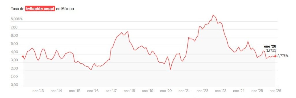 El Instituto Nacional de Estadística y Geografía (INEGI) informó que la inflación en México se aceleró al 3.77% interanual durante la primera quincena de enero de 2026. Esta cifra coloca al indicador por encima del objetivo del 3% establecido por el Banco de México (Banxico) y supera el 3.69% registrado al cierre del año pasado.