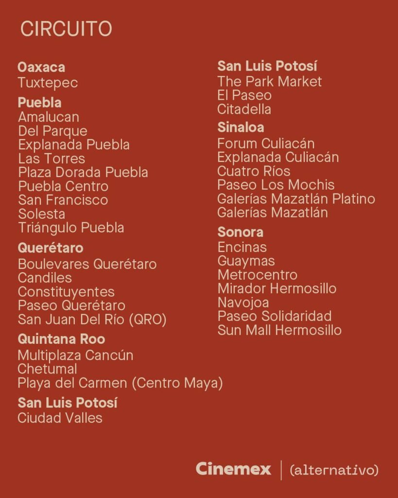 Esta función especial estará disponible del 29 de mayo al 4 de junio en múltiples complejos de la cadena, especialmente en la Ciudad de México y otras ciudades principales.