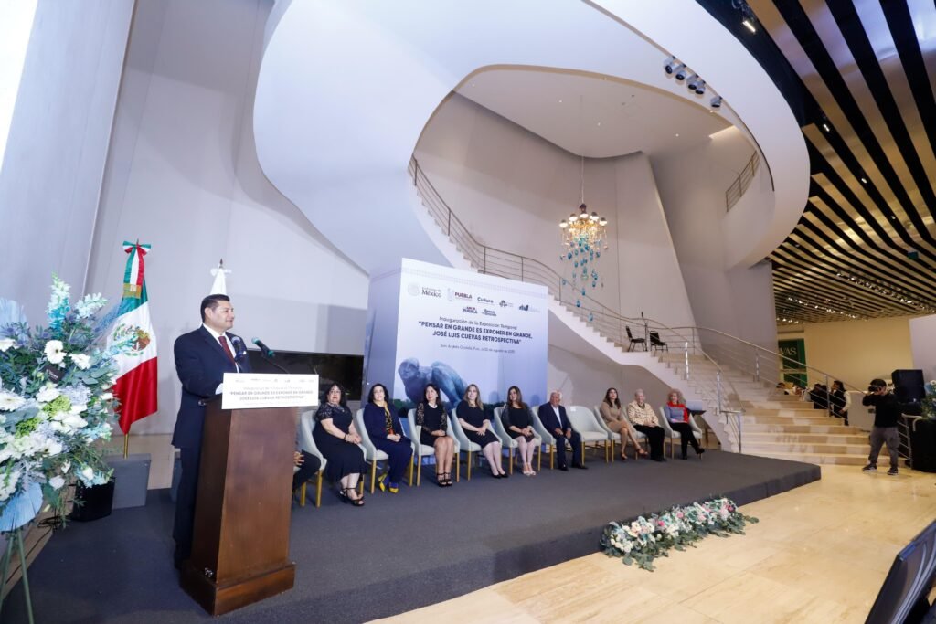 El gobernador Alejandro Armenta destacó que esta exposición es ejemplo del impulso a la cultura, considerado un pilar para la construcción de paz. Subrayó que el museo sede, anteriormente símbolo de una deuda millonaria, ahora es del pueblo. “Recuperamos el museo barroco y lo convertimos en patrimonio real de los poblanos. Esta muestra refleja la calidad de arte que merece Puebla y su gente”, declaró el mandatario, quien agradeció la generosidad de la familia Cuevas y reconoció la historia de amor entre el artista y su esposa Beatriz, quienes se casaron 15 veces en distintos rituales y lugares del mundo como expresión de su vínculo inquebrantable.