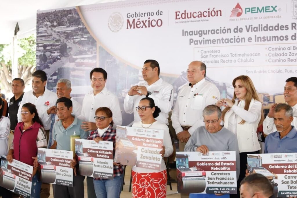 SAN ANDRÉS CHOLULA, Pue.- Como premio a que Puebla ocupa el primer lugar en decomiso de hidrocarburos, para 2026, PEMEX destinará 5 mil toneladas más de asfalto, que se suman a las 3 mil 500 recibidas este año, para superar la meta de 5 mil calles pavimentadas, que contribuyen a la visión humanista de la presidenta Claudia Sheinbaum, de generar entorno seguros para vivir.