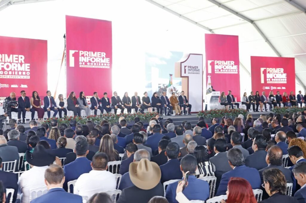 El gobernador Alejandro Armenta selló su mensaje de rendición de cuentas ante los sectores sociales y representativos del estado: “Con orgullo hemos cumplido en equipo en esta fase. En este primer informe de gobierno vengo a rendir cuentas con resultados; sentamos juntos las bases del desarrollo para el segundo piso de la Cuarta Transformación. Un proyecto que reafirma nuestra soberanía, fortalece la vida pública y coloca a Puebla en la ruta del progreso que se merece, siempre bajo la directriz y el liderazgo de nuestra presidenta de México”. Acompañaron al gobernador Alejandro Armenta durante su informe, el mandatario de Oaxaca, Salomón Jara Cruz; representantes de los gobiernos de Veracruz, Quintana Roo, Chiapas, Guerrero y Tlaxcala; el exgobernador de Puebla, Sergio Salomón Céspedes; la senadora Liz Sánchez y el senador Ignacio Mier. También asistió el presidente de la Junta de Coordinación Política en la Cámara de Diputados, Ricardo Monreal; el legislador federal, Pedro Haces; el arzobispo de Puebla, Víctor Sánchez Espinosa e integrantes de la iniciativa privada.