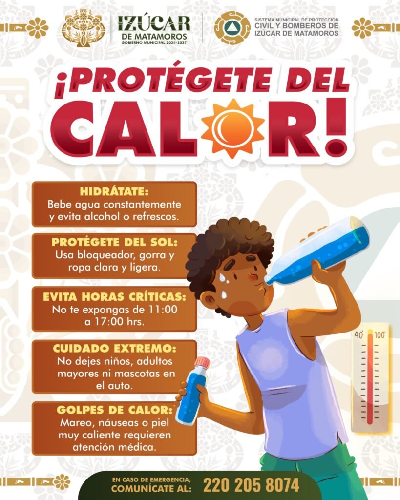 El Sistema Municipal de Protección Civil y Bomberos de Izúcar de Matamoros difundió un listado de medidas preventivas con el objetivo de evitar casos de golpe de calor entre los habitantes del municipio.