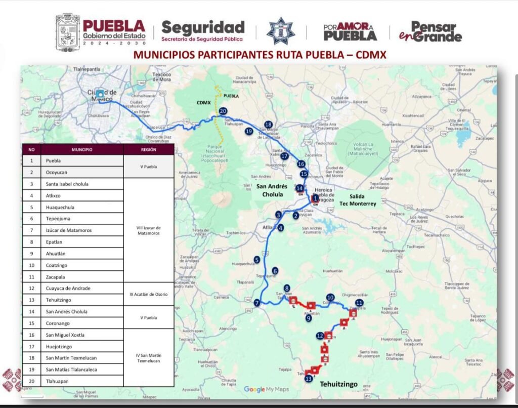 Cabe destacar que los participantes de la Carrera Panamericana ingresarán a Puebla provenientes de Oaxaca con destino a Tehuacán, donde harán una parada para convivir con la afición. Posteriormente, continuarán su trayecto hacia la capital del estado, para llegar a la meta en el Zócalo de Puebla. Durante su recorrido el sábado 11 de octubre, la ruta abarca la región de la mixteca poblana, con una escala en San Pedro Cholula, antes de partir rumbo a la Ciudad de México.