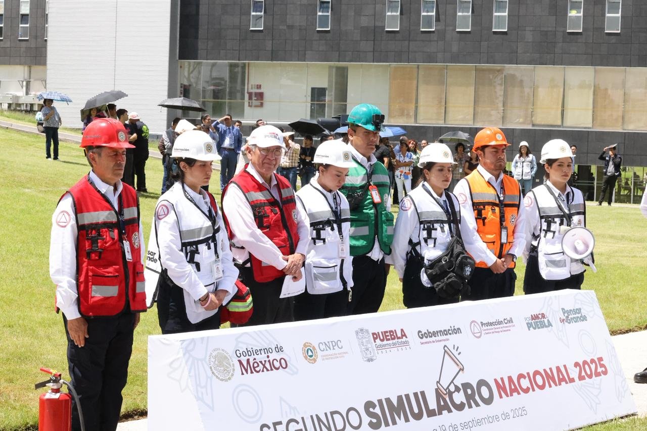 CIUDAD DE PUEBLA, Pue.- Puebla se sumó al Segundo Simulacro Nacional 2025 desde el Centro Integral de Servicios (CIS), donde el gobernador Alejandro Armenta encabezó la evacuación. El ejercicio comenzó puntualmente a las 12:00 horas y concluyó satisfactoriamente a las 12:11, con el reporte de evacuación total de la población fija y flotante del edificio. Este simulacro conmemoró los sismos del 19 de septiembre de 1985 y 2017, al destacar la importancia de fortalecer la cultura de la protección civil.