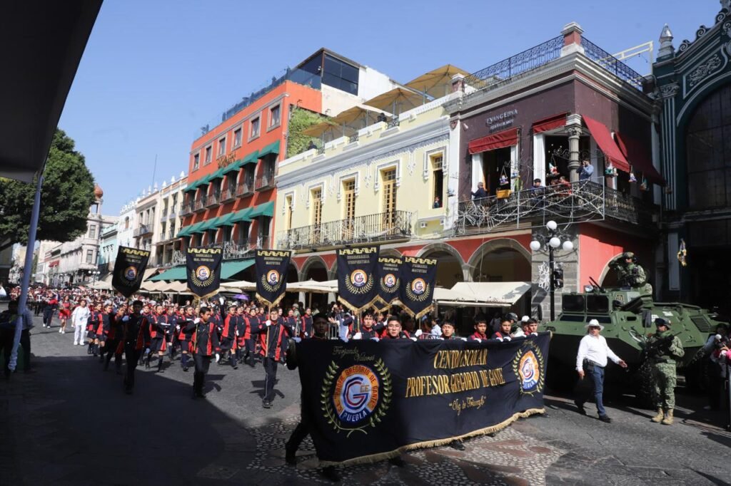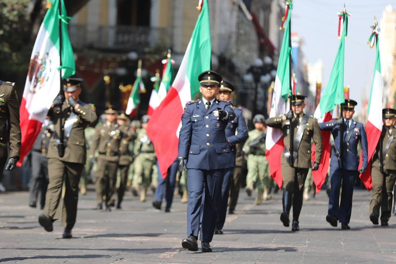CIUDAD DE PUEBLA, Pue.- El gobernador Alejandro Armenta presenció el desfile cívico-militar por el 115 aniversario de la Revolución Mexicana en compañía de su esposa Ceci Arellano y de mandos de la Secretaría de la Defensa Nacional, Guardia Nacional, Secretaría de Marina, miembros del gabinete estatal y autoridades municipales. El recorrido avanzó por 2 kilómetros en el corazón de la capital poblana, desde la avenida Reforma hasta la 25 Oriente, con una duración aproximada de una hora.