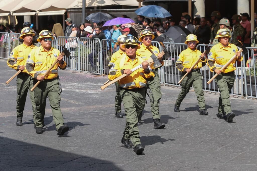 Las corporaciones de seguridad exhibieron equipos de patrullaje, incluidas bicicletas, motos, vehículos tácticos tipo Black para zonas y situaciones de alto riesgo, unidades de bomberos, grupos de proximidad social y la Policía Estatal Forestal. El coronel Mauricio Sánchez López, comandante de la columna del desfile, informó la participación de banderas nacionales, bandas de guerra y más de 900 elementos de seguridad pública y fuerzas armadas, sin registrar incidentes.