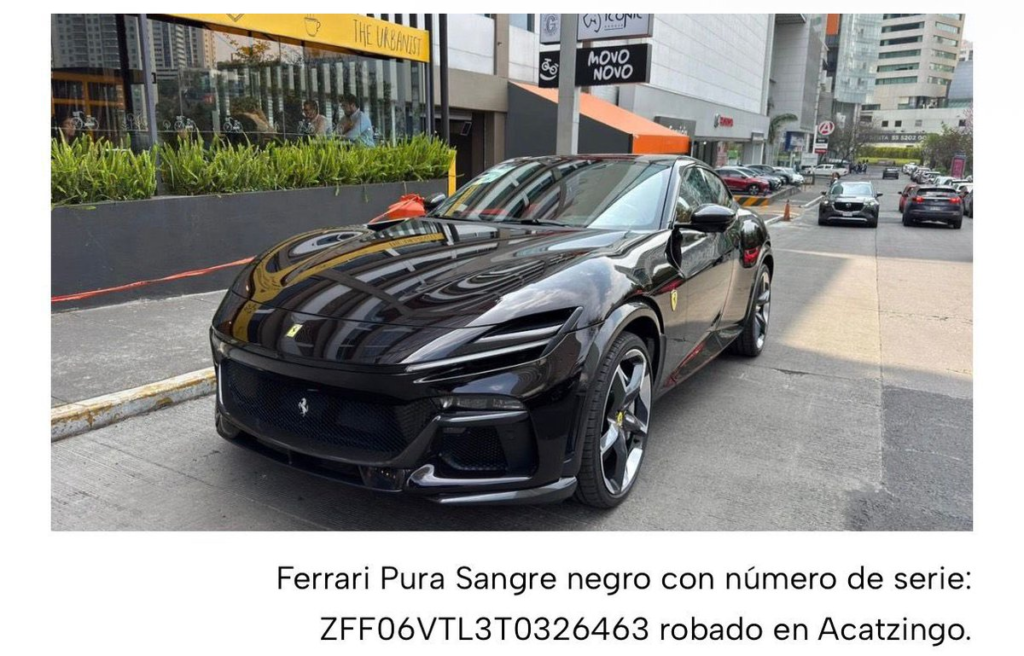 De acuerdo con los reportes, el robo ocurrió alrededor de las 06:15 de la mañana del 21 de abril, cuando la unidad —un Ferrari color negro, modelo 2026, sin placas de circulación y con número de serie ZFF06VTL3T0326463— era trasladada desde la Ciudad de México con destino al estado de Yucatán.