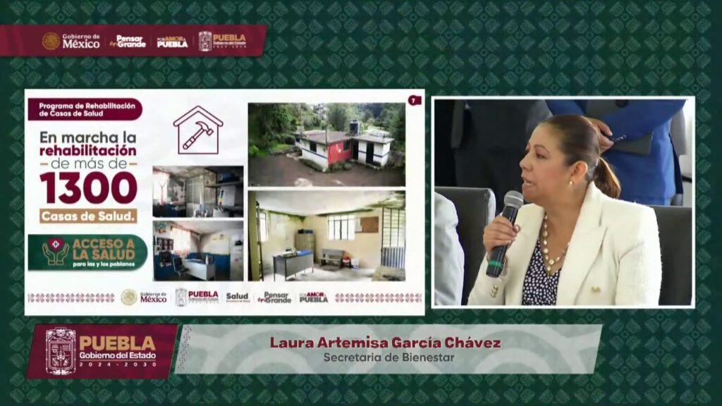 La secretaria de Bienestar del Gobierno de Puebla, Laura Artemisa García Chávez, informó que durante 2025 se rehabilitaron más de mil 300 casas de salud bajo el esquema de obra comunitaria, lo que ha permitido mejorar las condiciones de atención en diversas regiones del estado.