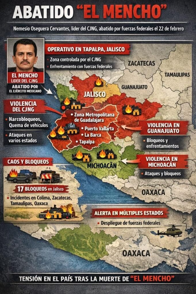 La tarde de este domingo 22 de febrero de 2026 trascendió la muerte de Nemesio Oseguera Cervantes, alias “El Mencho”, fundador y máximo líder del Cártel Jalisco Nueva Generación (CJNG), tras un operativo federal realizado en el municipio de Talpa de Allende.