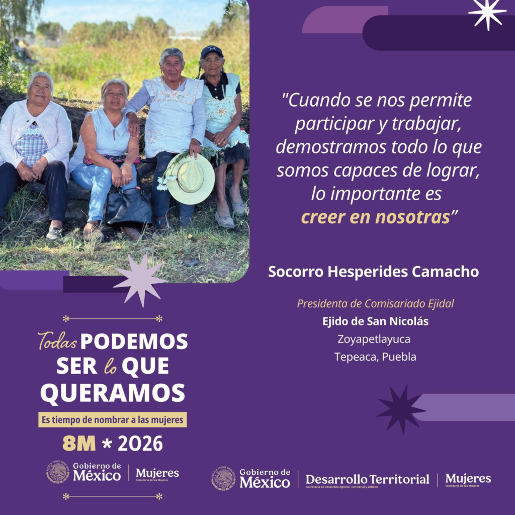 En el marco de la conmemoración del Día Internacional de la Mujer, el Gobierno Municipal de Izúcar de Matamoros difundió el trabajo de Socorro Hesperides Camacho, actual presidenta del Comisariado Ejidal de San Nicolás Zoyapetlayuca.