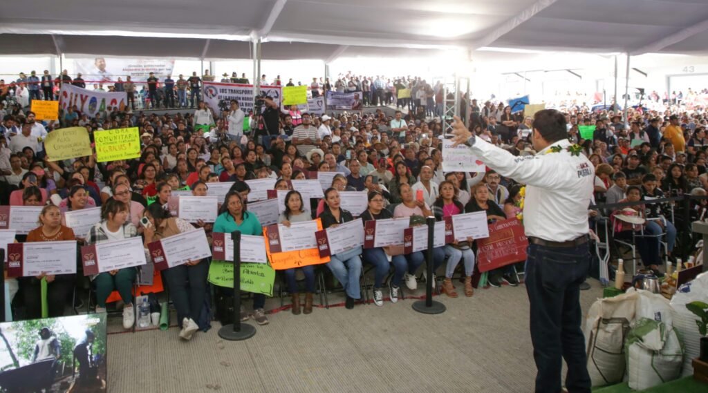 TEZIUTLÁN, Puebla.– Como parte de la estrategia integral de seguridad y bienestar para el estado, el gobernador Alejandro Armenta encabezó la entrega de apoyos productivos a más de 2 mil productoras y productores de 11 municipios de las regiones de Teziutlán y Tlatlauquitepec.