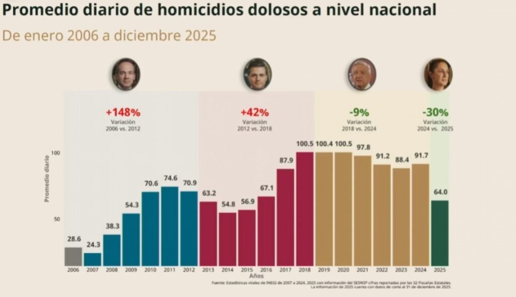 En base a la ola de violencia compartió las gráficas que señalan que los homicidios dolosos que se han registrado van a la baja, destacando que poco a poco se han ido combatiendo con el apoyo de ejército mexicano y las autoridades de cada estado.