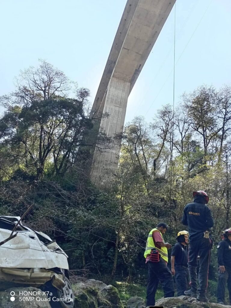 El percance ocurrió cuando la unidad en la que viajaba la mujer se precipitó desde una altura superior a los 50 metros, en la parte más alta del puente, lo que provocó que el vehículo quedara completamente destrozado.