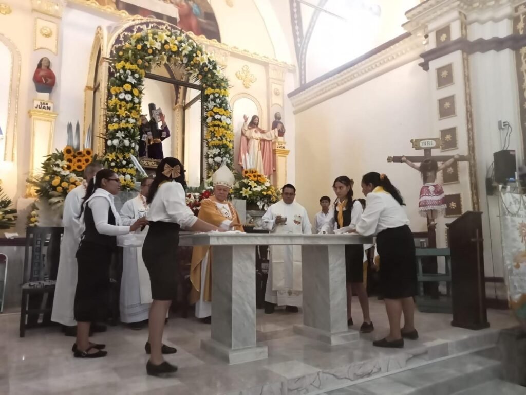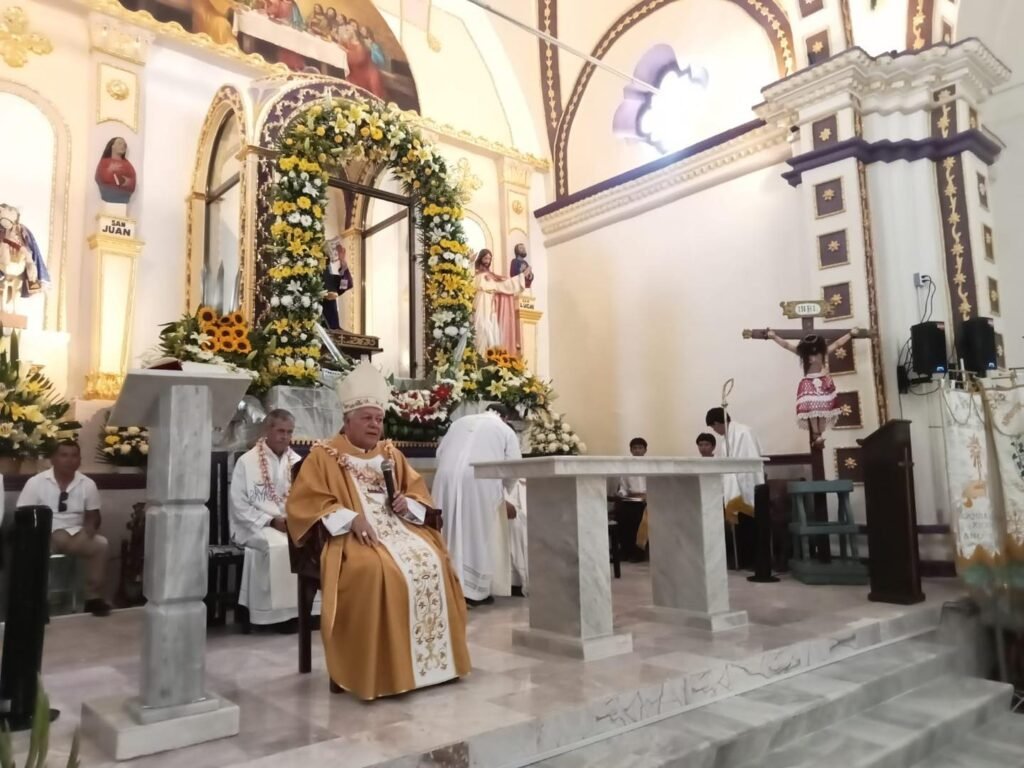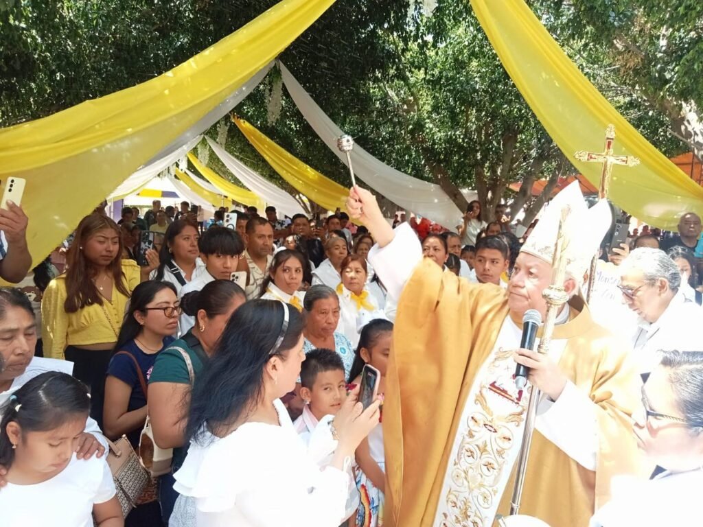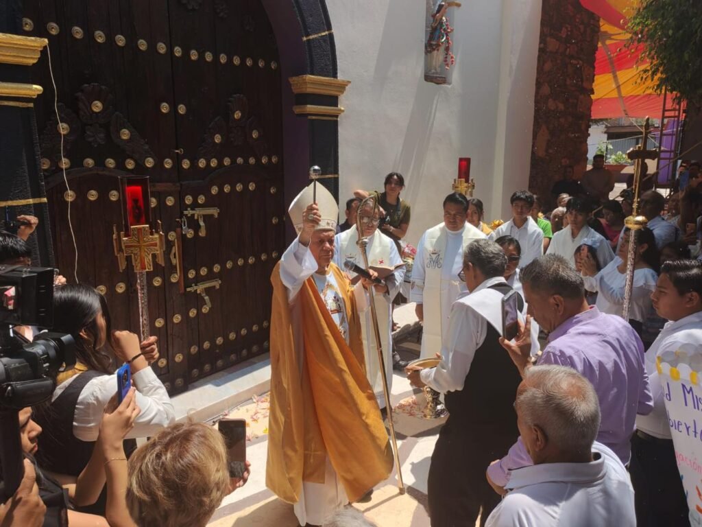 La ceremonia religiosa se realizó alrededor de las 13:15 horas, cuando el prelado arribó a la comunidad y fue recibido por feligreses a las afueras de la iglesia dedicada al Padre Jesús de Nazaret, acompañado por el párroco Laureano Velázquez Romero y el decano Omar Malpica. Posteriormente se llevó a cabo el rito de bendición y reapertura del templo, que incluyó la aspersión de agua bendita, la apertura simbólica de las puertas y la bendición del interior del recinto.