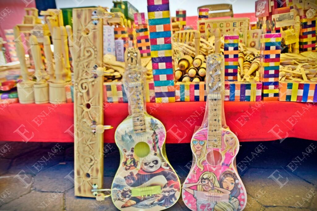 “La verdad, sí ha bajado mucho. Los niños prefieren el celular. Ya no conocen estos juegos de madera”, comenta. Entre sus productos destacan rompecabezas, xilófonos, sonajas, guitarras y el clásico Jenga, todos hechos a mano con materiales naturales. Además, también ofrece cucharas, palas y molinillos utilizados en la cocina tradicional.