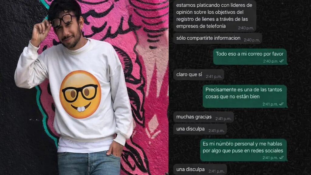 Horas después de su publicación, Montiel aseguró haber recibido un mensaje vía WhatsApp de una persona que se identificó como alguien “de arriba”, quien le ofrecía información sobre el registro telefónico. El influencer afirmó que nunca proporcionó su número, lo que interpretó como una posible filtración o acceso indebido a sus datos personales.
